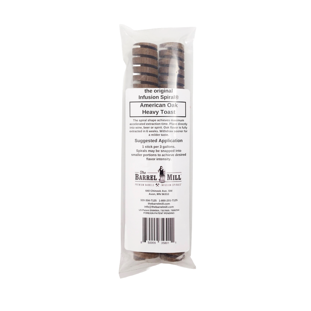 Create deep, complex, barrel-aged character with the American Oak Infusion Spiral – Heavy Toast. Crafted from premium American white oak, this spiral imparts rich notes of smoke, dark caramel, roasted coffee, spice, and chocolate, perfect for enhancing bold red wines, dark beers, and aged spirits.